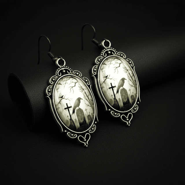 Raven on Tombstone Earrings – Gothic Dark Elegance
